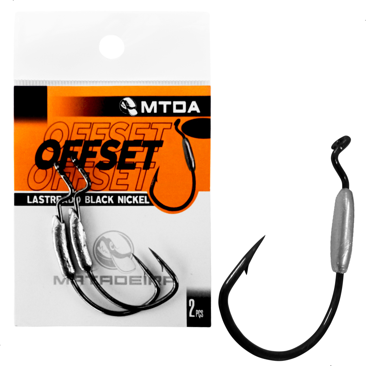 Anzol Off Set EWG Lastreado MTDA, fabricado em aço de alta resistência, afiado quimicamente e com acabamento Black Nickel resistente a corrosão, leve e extremamente forte, possui um desenho específico que garante fisgadas mais eficientes. O lastro de chumbo faz com a isca desça mais rapidamente ao fundo d'água.